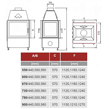 - Внутренние размеры топки, см 72x61x50h