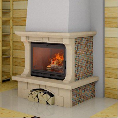 Боковые части облицовки выполнены из пеноблока, который Вы сможете сами облицевать различным материалом, толщиной не более 30мм. Это может быть декоративный камень, керамическая плитка, талькохлорит либо любой другой материал, подходящий именно Вам и Вашему дому.